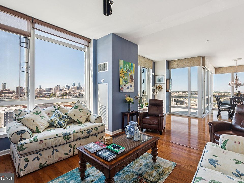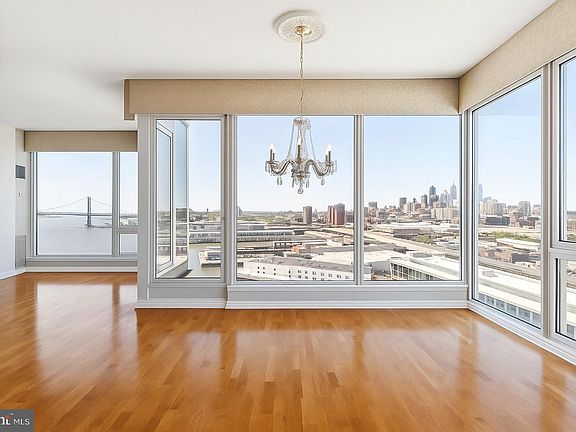 Experience an unparalleled lifestyle in this exquisite corner penthouse at Waterfront Square. This expansive 3-bedroom, 4-bathroom residence offers over 2,700 square feet of sophisticated living space with 10-foot ceilings, walls of glass, and a private service entrance. Two private terraces, totaling more than 300 square feet, showcase breathtaking 270-degree views of the Delaware River, the Ben Franklin Bridge, and downtown Philadelphia. Additional highlights include complimentary shuttle service to and from the city, electricity included in the monthly HOA, and being just steps away from buses and trains for ultimate convenience. Originally a four-bedroom residence, the layout was reimagined to create a grand open living area where dining, entertaining, and relaxation flow seamlessly. Natural light floods through floor-to-ceiling windows, while dramatic city and river views set the backdrop. The chef’s kitchen features an oversized island, custom pantry, LG and GE appliances, wine refrigeration, and imported Italian countertops with a matching designer backsplash. Every detail reflects elegance and function. The primary suite offers serene east-facing views and closets galore. Its spa-inspired bath includes a standing shower, Jacuzzi tub, and private balcony. The second bedroom features floor-to-ceiling windows, generous storage, and a luxurious en-suite bath. The third bedroom is versatile and ideal as a guest room or private office. With impeccable finishes, unmatched scale, and thoughtful design, this penthouse offers exclusivity and refinement—yet still feels indulgent and inviting. Association fees include a 24-hour security concierge, state-of-the-art fitness center, an Olympic-size indoor pool with hot tub, an expansive residents' lounge, a dog park, and a lavish sundeck with sweeping river and bridge views. Perfectly situated in Northern Liberties, this deluxe, pet-friendly residence is steps from fine dining, convenient shopping, exciting nightlife, and easy access to major transportation.