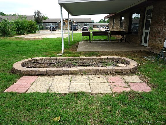 Pretty corner lot, with brick home and a front courtyard with mature landscaping and roses. Additionally, back yard has a big covered patio and multiple free-standing garden containers. Pretty arched doorways in kitchen and living room. Three beds and 1.5 baths, with new vinyl plank flooring and carpet in bedrooms. Kitchen is tiled. Attached 2 car garage with extra storage area. Laundry area in garage. Detached car port as well as attached 2 car garage. Multiple parking areas. Back yard has RV or boat parking space. Newer chain link fence around entire back yard with several gate access points. All electric home.