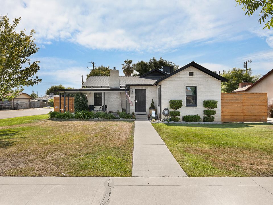 Simply adorable cottage home located downtown Visalia! This sweet home has been lovingly restored and updated to offer every one of today's comforts. As you walk in you are met with an adorable place to remove your shoes or hang your purse. Then you will see the original hardwood floors and perfectly situated living room with new gas fireplace. The new windows let in a ton of natural light and there is plenty of room for a large table and area for office. The kitchen maintains its original charm with hardwood floors and original cabinetry, but has a beautiful updated glass backsplash, solid surface countertops and of course a dishwasher! The laundry room has a ton of storage and is located inside, just off of the kitchen. The two bedrooms are oversized and have ample storage. The owners suite has a sweet little half bath and two closets. The front bedroom is spacious, filled with natural light and has a good sized closet. The yard is a true gem! Not often found in this area is a professionally designed and landscaped oasis. There are areas for a garden, areas to sit and relax, place for kids to play, and a pergola that offers great shade. The fence is extra tall for privacy and there is an oversized gate for potential RV parking next to the detached one car garage. This home is just right and move in ready. Call to set up an appointment to have a look!