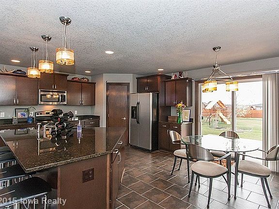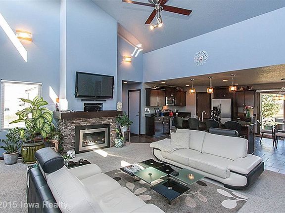 Stunning! Modern Style Ranch home in prime location! Open floor plan w/soaring ceilings & lots of natural light in Great Room w/stone fireplace. Large kitchen w/tile floor, granite, stainless steel appliances, oversized center island/breakfast bar, walk-in pantry, & spacious dining area leads to deck & great backyard w/garden shed. Master bedroom w/walk-in closet, master bath w/tile shower & his & her vessel sinks. Additional BR, full bath & convenient laundry room complete the main level. Finished LL includes 2nd family room, gorgeous wet bar, 2 additional BRs, full bath, cedar closet & lots of storage. 3 car garage w/epoxy floor & service door, window treatments, upgraded lighting fixtures, tankless water heater, fresh-air intake, irrigation, custom matching garden shed (8'x12' & 13' tall), & more. Johnston schools. Move-in Ready!