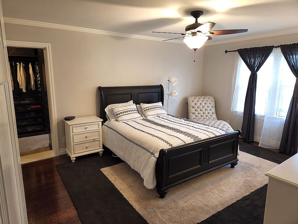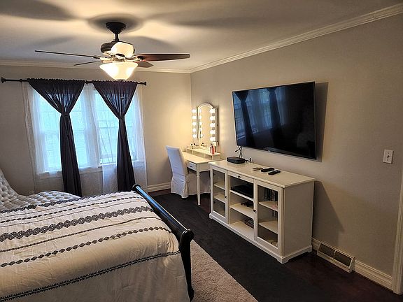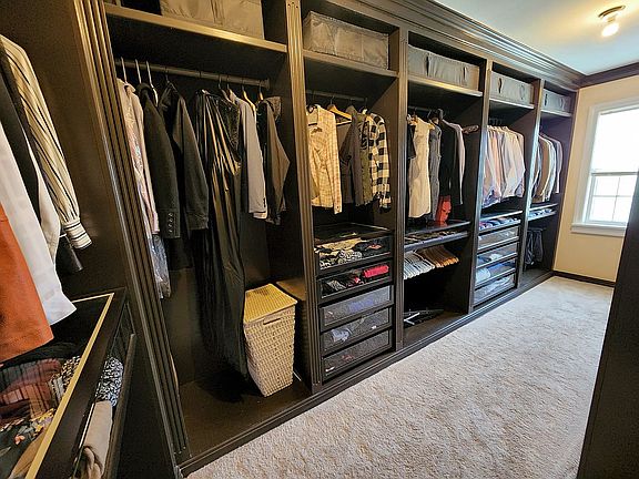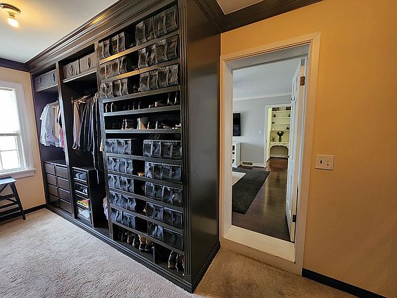 Unique and gorgeous home with thoughtful updates throughout! Beautiful bay window in formal dinning room. Custom bookcases and glass tiled fireplace in living room. Elegant entryway with curved stairway. Remodeled kitchen with new range hood. Master bedroom with large walk-in closet filled with custom hanging and storage solutions. En suite bathroom with subway tiles, double vanities, and shower. First floor also has two offices with built-in shelves and cabinets. Newly refinished basement clubroom with wetbar! Traditional two car garage with additional space (560 sq.ft.) behind it. Could be used as workshop, exercise room or two car tandem garage. Bonus storage building behind garage could be finished out as guest bedroom, workspace or "she" shed.
