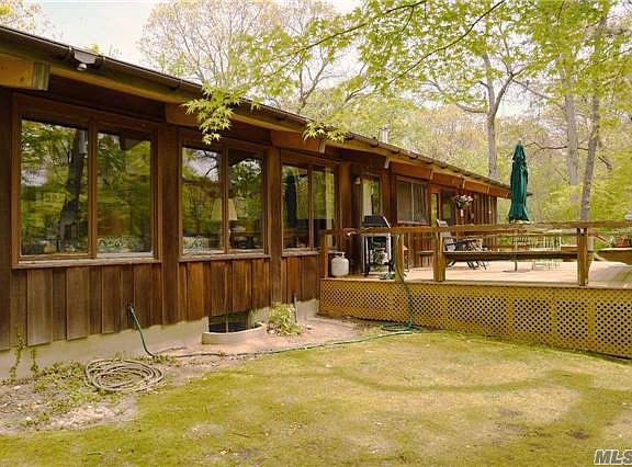 Horse Property Potential! Original Owner-Built 2 Bedroom Contemporary Style Home With Lovely Flair And Character! Vaulted Ceilings With Skylights, Gigantic Unfinished Basement With Huge Potential, Wood-Burning Stove In Den, Fireplace In Living Room. Updated Heating System And Cesspool. Large Deck For Entertaining. Connetquot School District.