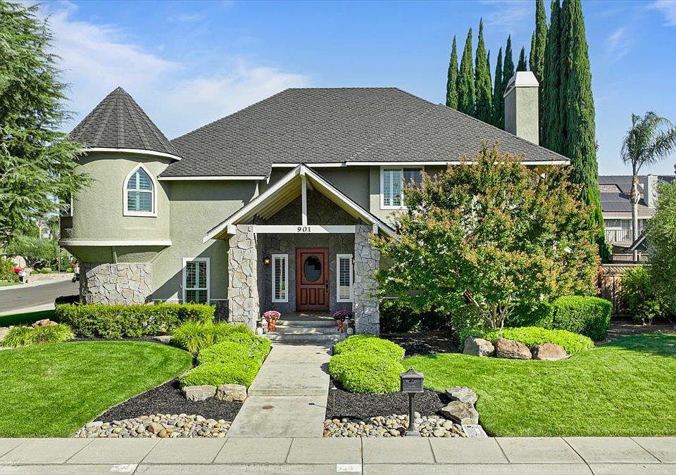Live where you play in beautiful Spring Creek, one of the most highly sought after areas of the lovely town of Ripon. Sparkling like a diamond is 901 Opal Lane situated just moments from the Country Club. Remodeled and beautiful with 3042 sq feet of living space and an outdoor oasis. Entering the home, you will find gorgeous hardwood flooring that flows beautifully to the living and family room. Entertain in the dining area with your very own wet bar. The kitchen is a chef delight complete with GE Cafe appliances with solid surface countertops, breakfast bar and nook area with ledger stone. Up the stairs to the turret room which is suited for any prince or princess. The primary suite houses its own fireplace and amazing bathroom that feels spa like. Step out to the backyard with a covered patio, built in pool, pergola, rock fireplace and artificial grass. Plantation shutters, tankless water heater, whole house fan and so much more is what this beautiful home has to offer. Membership to Spring Creek Golf and Country Club is not included in this purchase.