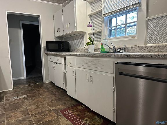 NEW PRICE! $99,000 - Great starter home UNDER $100,000 in convenient East Gadsden! Located in Paden Community and near Gadsden State, this home offers 2/3 bedrooms, two baths, kitchen with stainless appliances, and living area. Plenty of storage in basement, fenced-in back yard, metal roof, vinyl siding. Skip or stop paying rent and make this home yours today!