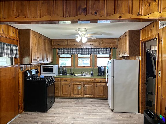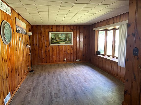 Small but spacious with the open floorplan. Home is a 2 bedroom ranch with 2 car attached carport. The home is located on a corner lot with small fireplace in one corner. Living room and kitchen is open together with knotty pine walls and a bow window to allow natural lighting. The kitchen has oak cabinetry. The bathroom has been remodeled with a pretty vanity and tiled shower. There are 2 bedrooms. Next to the kitchen area is a nice utility area for convenience. (storage shed is not included being moved.)(Appliances can be purchased separately) Perfect for starting house cleaning or downsizing.