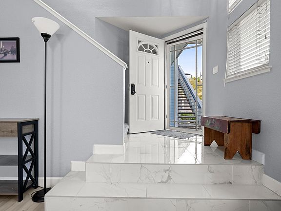 Welcome Quiet Harbor in Glen Cove, a beautiful remodeled two-story end-unit townhouse. This spacious 3-bedroom, 2.5-bath end-unit offers stunning water views and a perfect blend of style and comfort. The main level features a fully updated kitchen with modern finishes, a bright and open living area with two sliders leading to the back patio, a stylishly remodeled fireplace, a convenient downstairs bedroom, a half bath and laundry room. Upstairs, both bedrooms boast private, remodeled en-suites, creating ideal retreats for rest and relaxation. Step outside to a private patio overlooking the sparkling community pool perfect for relaxing or entertaining. Additional highlights include an attached garage with rare interior access, huge privacy, A/C and ample storage, Ideally located near parks, marinas, and scenic walking trails, and pickleball courts! This home offers resort-style living with everyday convenience.