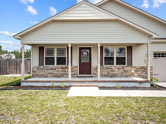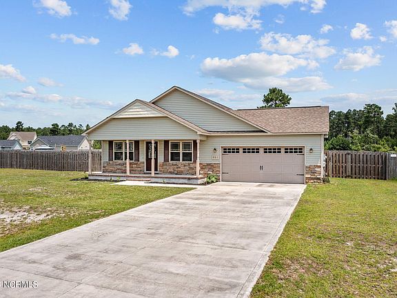 This fantastic, corner lot home is just what you've been looking for! When you pull up, you'll immediately notice the covered front porch and all of the front and side yard space. Once you enter, you'll fall in love with the open concept living area. To your left is the living room and to your right is the kitchen, bar top space, and dining area. The kitchen is efficiently laid out, and perfect for entertaining! Down the hallway you'll find the three bedrooms and two full bathrooms, as well as the laundry closet. The master bedroom is spacious with a tray ceiling, and boasts a large walk-in closet and private bathroom with double vanity and garden tub. Outside, you'll love the covered back porch, and fenced in yard for extra privacy. The location of this home is top notch, in a desirable neighborhood with a community pool. Call today to see this home in person!