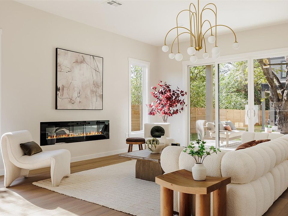 Discover a rare opportunity for modern luxury living and impeccable design in South Austin. Welcome to 901 Redd Street Unit 1 offering a stunning, brand-new home at a sought-after price point. Just under 2,500 square feet, this home features 4 bedrooms (primary down) and 4.5 bathrooms — one private bath for every bedroom, plus a stylish powder room for guests — offering comfort, privacy, and functionality. Designed and built by a women-led team, these homes reflect a modern-yet-inviting aesthetic, with custom finishes and thoughtful amenities throughout. Enjoy real hardwood floors (no concrete), 8-foot doors, 10-foot ceilings, oversized windows oriented toward tree-lined views, and private bathrooms for each bedroom featuring unique tile work and designer fixtures. Spacious secondary bedrooms include generous closets, and the upstairs flex space with a built-in beverage bar, ideal for an additional living, office, or playroom. An open-concept begins with a designer kitchen with custom cabinetry, Taj Mahal quartz, and luxury appliances with built-in microwave and fridge. From the kitchen, the space opens to a generous dining and living area with custom brass chandeliers, a sleek contemporary fireplace, and two sliding glass doors leading to the private backyard and outdoor covered patio, perfect for entertaining or unwinding. Every finish, from lighting to tile to mirrors, has been carefully selected for timeless style and modern comfort. Outside, enjoy two distinct outdoor spaces: a peaceful front porch and lawn, and a backyard lawn shaded by a mature pecan tree, with space for a vegetable garden, play area, or future plunge pool. Boasting one of the most central locations just 5 minutes to Central Market, 10 minutes to South Congress, 15 minutes to the airport. Everything you need is just minutes away - all while coming home to a quiet, tree-lined cul-de-sac.