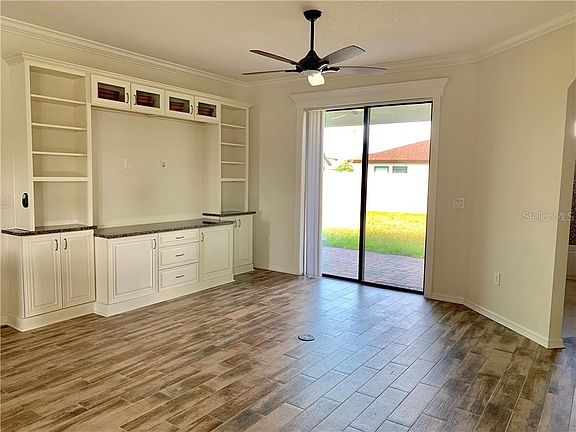 - Interior Features: Ceiling Fans(s), Master Bedroom Downstairs, Open Floorplan, Split Bedroom, Stone Counters, Walk-In Closet(s), Crown Molding, Solid Wood Cabinets, Kitchen/Family Room Combo, Built in Features, Window Treatments, Tray Ceiling(s), Coffered Ceiling(s)