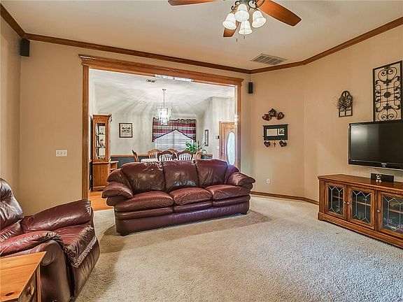 Fantastic location in the Carl Albert school district! Property is located in a quiet cul-de sac with a large lot, 3 car garage and is a true 4 bedroom. This home has been meticulously maintained and features beautiful hard wood floors that lead into the kitchen which has granite counter tops, stainless appliances and lots of storage! Large living room features a fireplace and beautiful built-ins. All four bedrooms are all generously sized and two feature a jack and jill bathroom! This home has tons of natural light with beautiful views. Enjoy the huge back yard with with extended covered patio, to enjoy the outdoors on! Don't miss this opportunity and set your appointment today!