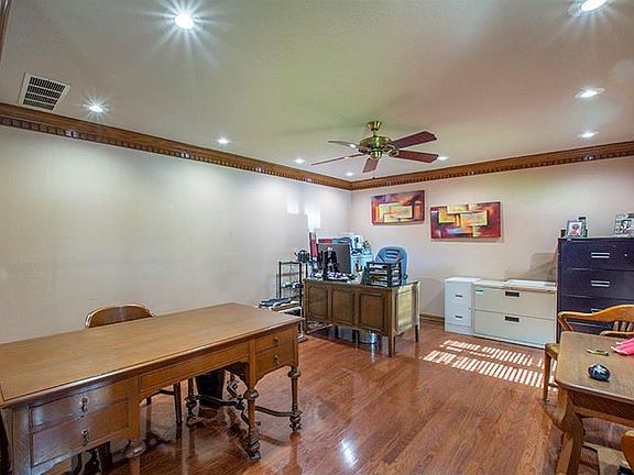 Large 3 bedroom, 3 bath, with 2 living areas There is a huge open atrium with sky light off of the eat in kitchen that is breath taking! Library paneling,and crown molding grace the living areas. Exterior is brick and stone with lovely arched windows. Newer Roof Some new paint, light fixtures! a Sprinkler system,In ground pool and backyard is fenced.(Hot tub is not in working order.) Truly a one of a kind home! 2 HVAC Units and 2 Water Heaters all for your comfort and enjoyment.