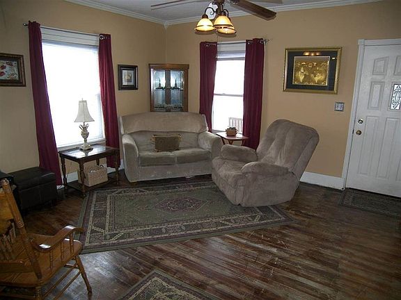 Sharp 3 BR bungalow with a covered front porch, deck on back and detached garage. Cute kitchen with formal dining area. Large master and basement.