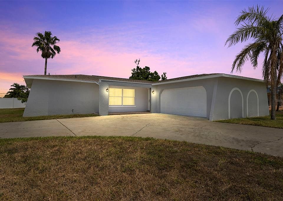 Check out this fantastic 2 Bedroom, 2 Bath, 2 Car Garage, POOL home! Conveniently located to shopping, arts, hospitals, eateries, nightlife, beach and more. This home features a large living and dining area overlooking the pool area from the kitchen. The kitchen features granite countertops, stainless steel appliances, and newer cabinets, along with a small sitting area. The master bedroom is on one side of the house, and the other bedroom is on the opposite side, offering extra privacy. A large pool in the screened lanai and a section for your table and lounge chairs. The backyard is fully fenced, with palm trees scattered throughout the yard. A Large circle driveway that fits 4+ cars, plus 2 more in the garage. New HVAC 2021, NEW ROOF 2019, Electrical Update in 2021, New Pool Pump, and more. Schedule a tour today! Agents please see remarks.
