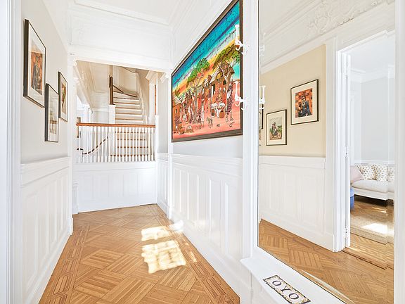 901 Saint Marks Ave is a unique landmarked brownstone mansion bathed in sunlight, rich in history and the perfect marriage of pre-war architectural details and modern finishes. The upper triplex is a 4 Bed/ 4 Bath /2 Patio beauty totaling 9 rooms and including a formal dining, chef's kitchen, home office, alfresco dining, and as enough space to spread out...and in this new normal...that is priceless! Located on what was once known as Millionaire's Row, this home sits across from Brower Park and The Brooklyn Children's Museum in Crown Heights North, a historic landmark district. The home is set back from the property line to allow for a manicured garden and raised stone porch --the perfect place for morning coffee or evening cocktails as you look out over Saint Marks Ave. Through the original wrought iron front door you'll find an entry hall with the original built in mirror, three grand parlours with hand inlaid floors, french doors, ornate crown moldings, two fireplaces, corinthian columns, built-in bookcases, pocket doors, coffered ceilings, three and five foot wainscoting. The two front parlours make for grand living room and entertainment space and through the pocket doors you'll find the back parlour, a king size bedroom (#1) that is currently used as a den. Behind the parlours you'll find a coat closet and a great location to store bikes. Continue upstairs at the front of the home you have king size bedroom (#2) with bay windows, stone fireplace, and ensuite bathroom (#1) with walk-in rain shower. On the landing, tucked behind a secret door, you'll find a full size stacked washer and dryer with steam feature. Head towards the rear of the home for a formal dining room with original stained glass window, a full guest bathroom (#2), a breakfast nook, and a chefs kitchen with stainless steel appliances and an abundance of cabinets. Off of the kitchen, through the back door, is a large rooftop terrace that overlooks neighboring gardens and Kingston Ave. The canopied pergola makes alfresco dining an option rain or shine. Upstairs on the third level you will find a home office that has it's own private patio, a queen size bedroom (#3) and ensuite bathroom (#3) with skylight shower that will take your breath away. Down the hall is another skylight bathroom (#4) with a separate bathtub and shower. Next door is a king size bedroom (#4) with double closets and bay windows overlooking Saint Marks Ave. On this floor you also have two additional storage closets. This home can be delivered furnished or unfurnished. You have to see it to believe it. Please reach out for a virtual tour or a private sanitized showing.