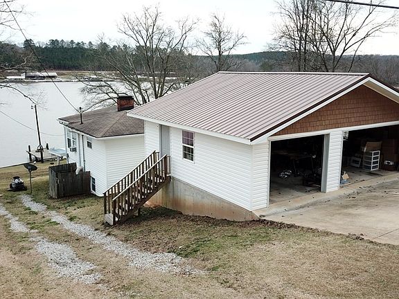 Picture yourself here sipping coffee on the covered front porch overlooking the 157 acre fish and ski lake! The main level offers a great room with a masonry fireplace, tile flooring for easy upkeep, and a private bedroom or sunroom. Upper level with hardwood and carpeted flooring, full bathroom 2-3 potential bedrooms (one of which spans the width of the home with tons of sunlight and gorgeous lake views). Detached 3 car garage for boat and toy storage plus an outbuilding for all your gear. Who's ready to go fishing? Check out our interactive REAL 3D Matterport tour.
