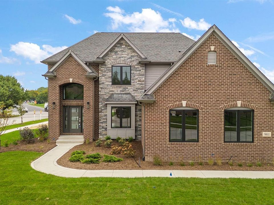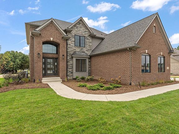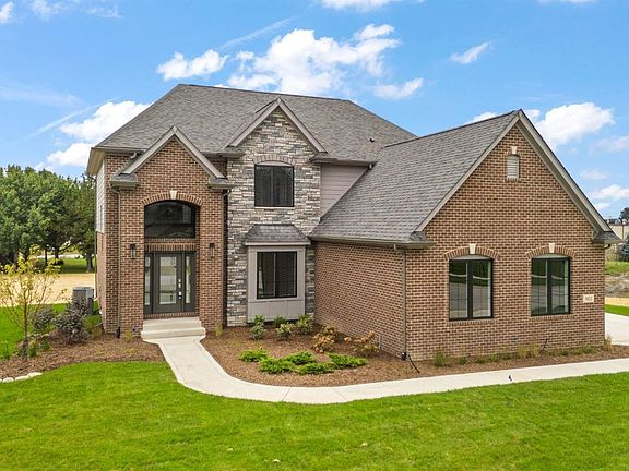 Welcome home to this 4 bed, 2.5 bath custom built home in the gorgeous Stonebridge Estates. Brick & cultured stone enrobe this luxurious 2 story home. Foyer greets you with full custom oak staircase & wrought iron spindles. Luxurious living room with handcrafted mantle, built-in shelving w/ electric LED fireplace. Open kitchen, breakfast area w/ marble countertops throughout, tile backsplash, custom cabinetry, soft-close drawers, whirlpool SS appliances w/smart oven, & pantry. Ceramic tile in bathrooms & laundry room. Marble countertops in all bathrooms. Custom-built lockers in mud room along with additional pantry/storage closet. Primary boasts a beautiful tray ceiling, ensuite spa bath w/ executive-sized walk-in closet. Ceramic tile shower with built-in seat and glass.Full unfinished basement with egress window, roughed-in bath. Finished and insulated 3-car garage, fully sodded/landscaped with irrigation system. Surrounded by 100-acre Teibel Nature Preserve!