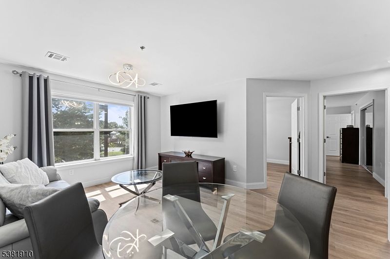 Welcome to this beautifully renovated 2-bed, 2-bath corner-unit condo in the heart of Union. This move-in-ready home offers a spacious layout with stylish finishes, blending comfort and convenience. The large primary suite features a private full bath and ample closet space. Both bathrooms are newly updated with their own Bluetooth speaker system offering modern comfort. Enjoy all-new interior doors with sleek hardware and customized closets featuring heavy-duty ClosetMaid organizers. The bright living room includes an acoustic wall panel in the TV area, new LED lighting, updated flooring, and new wood trims. A modern kitchen boasting smart LG stainless-steel appliances, quartz countertops, soft-close cabinetry, chic backsplash tile, and a waterfall peninsula breakfast nook. Located near GSP, Route 22, and I-78, this home is near schools and walking distance to Union's downtown shops, restaurants, medical offices, library, and other types of entertainment. Easy access to direct NYC-bound bus and rail transit. Added perksinclude a smart entry door lock, gas range with built-in air fryer, building elevator, secured phone-access entry, shared laundry room, semi-private storage, parking in shared lot, plus nearby city lot. The building features 24/7 surveillance in common areas. HOA is $330/mo for exterior/interior common areas maintenance, and snow removal. Current assessments are paid in full.