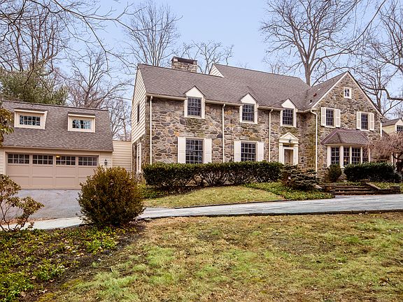 This classic 3-story stone Colonial in a coveted Penn Valley location makes a great first impression with its aura of grace & elegance. The surroundings with gorgeous trees & specimen plantings are further beautified by weeping cherry & Japanese maple. Exterior & interior enhancements include an expanded driveway lined in Belgian block, a recently painted exterior and newly-painted interior. The address is a family's dream, minutes to Penn Valley Elementary School, shopping & the expressway. A flagstone walk leads to the main entrance, giving way to a gracious Center Hall with oak floors that flow into the main rooms. A wide opening sweeps you into the airy living room with sunny windows, lovely moldings, built-ins & a fireplace creating a central seating area for family & guests. Across the foyer, French doors open to a spacious dining room with decorative moldings, a built-in china closet & scenic front property views. Glass-paneled doors spill out to the covered flagstone terrace for al fresco dining. A full butler's pantry streamlines serving & connects to the gourmet kitchen & family room that overlook the rear grounds. Brookhaven cabinetry, granite countertops & stainless steel appliances adorn the stylish kitchen, designed with thought for the cook & family. Adjacent sits a breakfast room with a wall of rear windows for gazing at views over coffee. The vaulted family room off the kitchen is appointed with V-groove paneling detail, white beam ceilings, tile floors & exposed stone. Sliding glass doors proceed to the flagstone terrace for entertaining ease. A den/game room with exposed stone & stone floor accesses the terrace as well. Owners added a convenient mudroom & 2-car garage with ready-to-finish space above for an office or studio. A renovated powder room & bedroom/bonus room with a renovated full bath complete the main level. Atop the main stairs is a Palladian window along with generously-sized bedrooms, a smaller study/BR, 3 full baths (one newly renovated) & laundry. The light-filled master BR has 2 fitted walk-in closets & is en-suite. The 3rd story's large room can function as an office or 5th bedroom & comes with a full bath. Enjoy fun & games on the lower level with a huge rec/family room, wood-burning fireplace, renovated powder room, 2nd laundry & storage. Expansive front & fenced rear lawn affords privacy while giving everyone plenty of room to play!