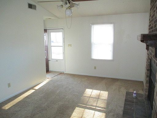 Nice 2 bedroom 2 bath duplex on a corner lot with a large yard that is great for play with the kiddos or for entertaining company with a cookout. Located outside the hustle and bustle of the city but still close enough for quick access to area bases, shopping and restaurants. This home features neutral tones throughout, an eat in kitchen and a fireplace in the living room. Brand new carpet throughout! Owner will allow adult dogs only under 20 pounds; no cats. This might just be what you are looking for so make an appointment to see it in person! See Addendum to Agent.