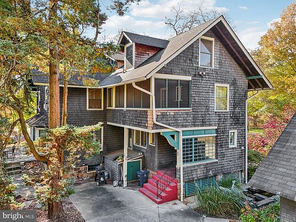 Designed and built in 1907 by true craftsman and steeped in Riverton lore. Cedar Shake exterior gives the look of a true refuge, a place to come home to relax and recharge. This amazing home is filled with natural light and offers spectacular views from every room. Hardwood floors throughout, deep window seats for day dreaming and reading, unique cabinetry, arches, french doors, glass door knobs, all treasures from an era when constructing a home was the art form of visionaries. Step into the foyer, then to the parlor and make your way from there. The first floor flows from room to room graciously. The great family room is huge and has a broad view of the Riverton Country Club Golf Course through a veritable wall of windows. This room also has a wood burning fireplace and a long row of built-ins for definition. Sliding glass doors lead to an elevated stone patio providing a private spot to relax overlooking pond #1 and the rear yard, never losing full sight of the golf course, That great room flows to the dining room with a deep and bright window seat. The dining room is connected to the kitchen by the butler’s pantry. A convenient powder room is tucked in here. From there step into the chef’s kitchen. A commissioned and custom hand hammered copper sink, 42 in. solid wood cabinets, radiant heat in the floors, a big’ol island and a sweet breakfast nook with banquets. Off of the kitchen is laundry, pantry and access to a wind protected side porch. The main staircase is wide and welcoming with an easy rise. On the first landing is another window seat! Just a few more steps to the second floor and 4 bedrooms. The owners suite has a fireplace, 2 closets, one of which is a walk in, a bathroom and a classic sleeping porch. Each bedroom has a view of the golf course. 2 of the bedrooms are connected The hall bath has 2 sinks, a Japanese soaking tub and a shower. This floor also has a large closet room, possibly a sewing room originally. Both of the bathrooms on the 2nd floor have radiant heat. The 3rd floor is accented with built in trunks and cabinets and the roof lines create interesting angles in these large rooms. Use them to host guests or as a rec room, office or yoga room. The casement windows are shaped to compliment the roof line. On your way out to the garage you pass pond #2, frog heaven. The garage is special. 2.5 car space and a second floor finished and heated! So many options for use and truly a quintessential “man cave” or “ she shed!” The lot is over half an acre. Plenty of room for swing sets and pools. All of the updates and improvements were well thought out and done with respect and appreciation for the original craftsmanship. There is still more to be done. Now is the time for you to put your finishing touches on this stunning home. Come see the detail in this house for yourself. Fall in love with it and with the way of living that it offers.