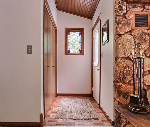 - Interior Features: Upgraded Countertops, Window Treatments, Wood Stove, Stain/Lead Glass, Carpet