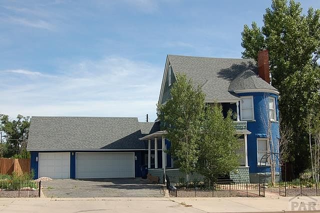Back on the market and ready to sell FHA quickly (appraisal done). Look at it today!!! Neat historic two story home with lots of updating, additions and remodeling over the years. Tremendous amount of charm resides here!!! Detached garage built in 1978 has been converted into finished space. Large three car attached garage was added in 1993, plus a tiled mudroom. Back of that is a huge screened in porch... wonderful for Pueblo's weather! Fenced-in back yard with lots of space, plus a couple of garden areas, concrete patio and more. Inside find a recently remodeled kitchen with new cabinets, Corian counters and gas range/oven. Woodwork is primarily still stained rather than painted and in good shape, plus nice hardwood floors in some rooms. Rounded dining room and master bedroom walls. Second floor covered balcony. 2 bedrooms on 2nd floor. One without a closet is on the first floor (currently an office), with its own bath. 4th bedroom is the entire 3rd floor of the house. Small utility basement, typical of the era.