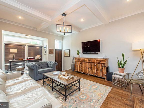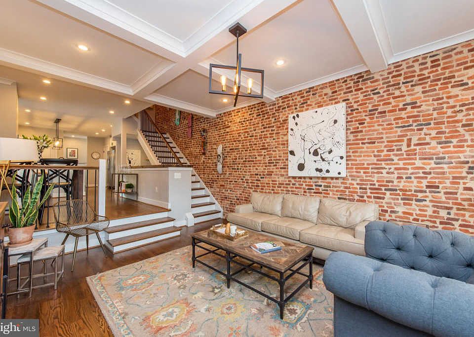Potential 3rd bedroom suite - Extra wide, impeccably maintained corner row home in the heart of Hampden - steps from The Avenue - offers stylish finishes and expansive, light filled living spaces throughout! Gorgeous wide plank hardwoods span the main level including spacious living room with exposed brick, coffered ceiling and bright store front style window leading to dining area and spectacular eat-in kitchen boasting granite counters, island with breakfast bar, on-trend light fixtures, stainless steel appliances and range hood, modern cabinetry and access to sizable deck. Upper level hosts two serene suites with plush carpet, roomy walk in closets and custom shades and window treatments, owner~s suite features 11 ft ceiling and luxe bathroom with an oversized walk in, dual head rain shower and stylish vanity. Both master Bedrooms have attached full baths on upper level. Fully finished lower level features a cozy family room, full bathroom, flex space ideal for 3rd master bedroom, home office or recreation with walk out access to more secluded patio and parking pad, and endless storage space including deep closet with additional washer and dryer hookup. This home was custom rebuilt in 2017 and includes energy efficient appliances, smart lock and thermostat and many more thoughtful features while preserving plenty of original architectural details. Prime, walkable Hampden location! Home Warranty Included! Open House Saturday 7/13 & Sunday 7/14 from 1-3pm.