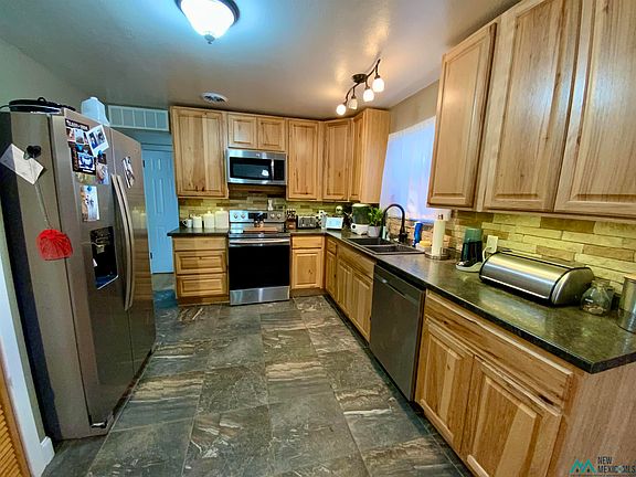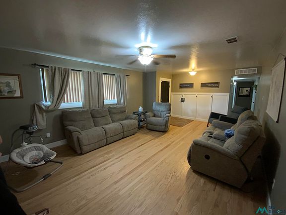 Check out this cozy home in Lovington, NM, featuring 3 bedrooms and 2 bathrooms. Situated on a large corner lot, this well-maintained home radiates curb appeal with its decorated brick facing. The front and back landscaping features mature trees that create a serene atmosphere for the property, complete with front and back sprinkler systems. The inviting living room opens up to the formal dining area, which seamlessly connects to the spacious, updated kitchen. Original wood flooring adds character throughout the house, enhancing its cozy atmosphere. Outside, enjoy the peaceful surroundings with a privacy fence and a storage shed/workshop. Additional features include front and back sprinkler systems, an extended 1-car garage, a storage closet, and a 14' x 26' storage building. This move-in ready home has plenty to offer. Don't miss out—call today to schedule your showing!