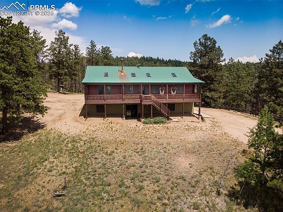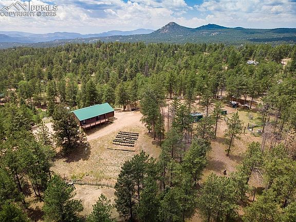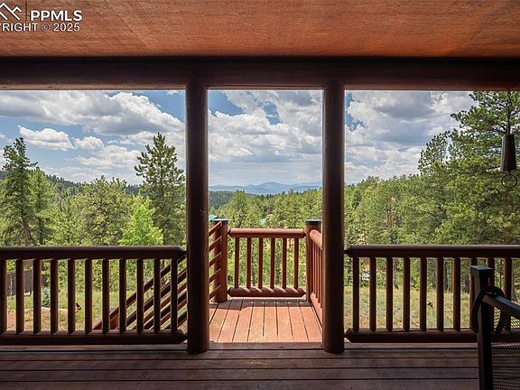 Nestled in the serene mountains of Divide, Colorado, this picturesque property offers an idyllic retreat just 15 minutes from town and under 2 hours from the renowned ski destinations of Breckenridge and Monarch. Situated on a gated 9-acre parcel, the home boasts breathtaking mountain vistas and is adorned with two expansive and peaceful decks. The fully fenced property features three outbuildings equipped with electricity. RV enthusiasts will appreciate the convenient hookups. Horses are allowed, and plenty of room to build your dream barn! Stay connected with the latest technology with a WiFi extender and Starlink satellite connectivity. Recent upgrades include a newly drug driveway in 2024, fresh exterior paint, and updated outside railings. Additionally, the property includes two cords of firewood and extra cattle panels for your convenience. Inside, the log cabin-style interior exudes rustic charm and offers a blend of comfort and natural beauty. Enjoy scenic views from every room, each equipped with its own patio. Vaulted ceilings with skylights create an airy ambiance, complemented by a cozy wood-burning fireplace and a convenient gas fireplace in the walkout basement for chilly mountain evenings. The kitchen is a chef's delight, featuring a newer refrigerator, brand new gas stove, dishwasher, and beautiful hickory cabinets. The main level is adorned with warm wood floors, adding to the home's inviting atmosphere. The walk-out basement is finished with newer carpeting, 3 rooms and a bathroom. An attached oversize garage provides secure parking and extra storage for vehicles or outdoor gear. Conveniently located just minutes from a bus stop, this property offers a rare combination of mountain tranquility and accessibility to both local amenities and premier recreational destinations. Whether you seek a peaceful retreat or a home base for outdoor adventures, this property promises the best of mountain living. One of Colorado's Finest.