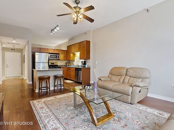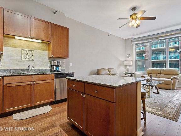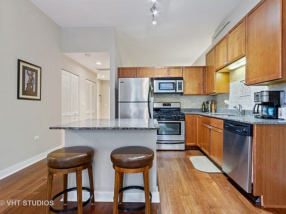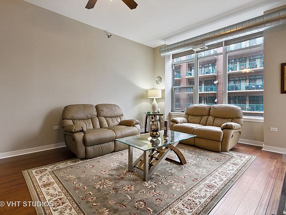 Spectacular 2 bed 2 bath offering in prime West Loop location. This home features many upgrades including engineered hardwood flooring throughout, gourmet kitchen with stainless steel appliances, tile back splash, granite counters and a center island. Lavish master suite has custom closet organizers and a new tile shower with frame-less glass door. North and east city views from living room, master bedroom and private balcony. In unit washer dryer, central humidifier and storage space. Indoor garage spot included in price! Building amenities include doorman, fitness room, party room and a sundeck with grills. Walk to the Loop, fine dining and more. Easy access to public transit and the highway.
