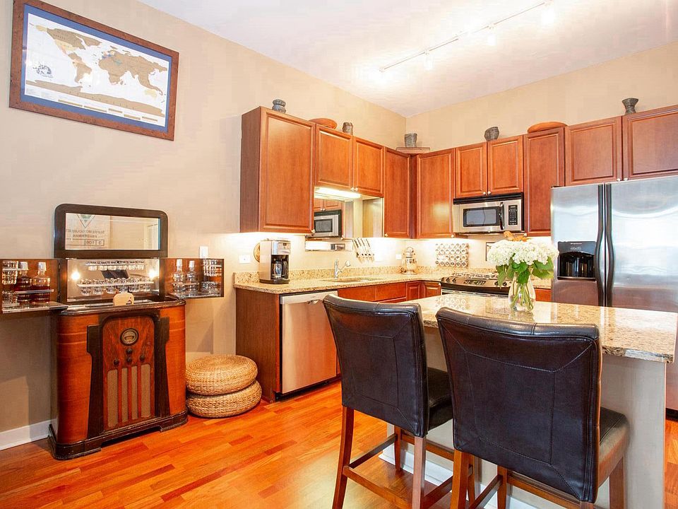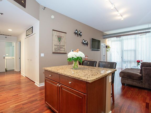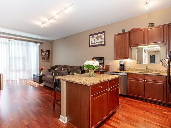 This spacious, upgraded unit includes cherry hardwood floors, granite counter tops, stainless appliances and high ceilings. It is located 2 blocks from nationally recognized Restaurant Row and Whole Foods. The value of this unit cannot be beat with the cable, high speed internet, heat, gasand storage included. The building is located on the Chicago CTA loop link for a 10 minute commute to downtown or a 10 minute walk to the Metra Train. $200/month for a parking space in a heated garage. Make this beautiful condo in an amazing neighborhood your home. Parking included. Owner Pays Heat, Gas, Water, Sewer, Trash, Cable, Internet. Tenant pays for electric