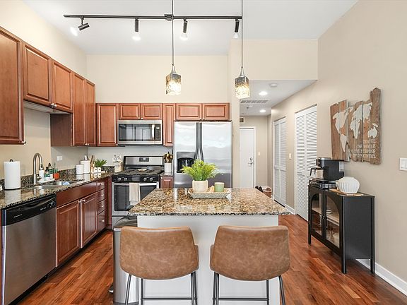 7/1/2025 lease start date 2 Bedroom / 2 Bathroom located in West Loop. In-unit laundry, dishwasher, stove, microwave, refrigerator. Private balcony Building gym (very large), Party room, Outdoor space w/ grill Pets allowed? 1 garage spot (heated garage) - $150 per month Storage unit included (located in garage) Landlord pays water/trash/sewage Cable & Internet Included Tenants pays for Gas (heat) & Electric (a/c) $500 move-in fee per person in lieu of security deposit. $75 application fee per adult applicant.