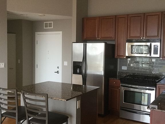 Prime West Loop location! Very large 1 BR + den with 1.5 baths with east exposure. Granite and stainless steel kitchen. Hardwood floors throughout. 2 walk-in closets and plenty of extra storage throughout. Private balcony and 2 common outdoor space in the building. Washer/dryer in unit. Building includes door person, fitness room, skydeck party room. Heated garage parking included. Steps to Soho house, Marianos, Whole Foods, Randolph street and more!