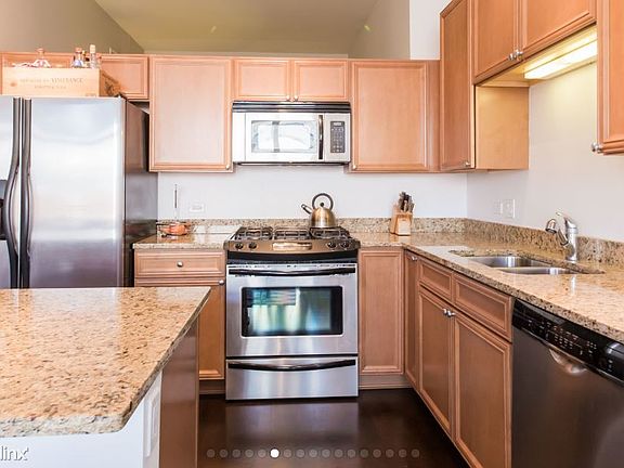 Bright and immaculate sixth floor 2 bed/2bath split floor plan unit in high amenity building in the heart of the West Loop. Unit boasts dark hardwood floors, 42'' maple cabinets, granite countertops, stainless steel appliances, breakfast bar island, in-unit washer/dryer, bright windows with Hunter Douglass window treatments, as well as private balcony. Master suite is enormous with generous walk in closet, en suite master bath with marble countertops. Common sun deck, dog run and gym in the building, steps from Whole Foods, Starbucks, Randolph St. Soho House and much more. Easy access to CTA bus/and expressways. Heated garage parking INCLUDED! No broker fee! (RLNE4526732)
