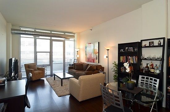 Large (877 sqft) 1 bed/1.5 bath with city skyline views (north & east) in ideal West Loop location with garage parking included! AVAILABLE NOW! Huge terrace off living room! Beautiful finishes throughout. Kitchen open to spacious living/dining room with plenty of space for a dining table and a desk. Master bedroom with organized walk-in closet and attached marble bath with linen closet. Hardwood floors in living areas. In unit W/D. Building has doorstaff, fitness center, rooftop deck, party room & storage. Rent includes heat, basic cable, internet and storage. No pets. Madison bus, Morgan green/pink lines, 90/94, Whole Foods, Mariano's, Randolph St "restaurant row", park & more within a few blocks! $500 processing fee in lieu of security deposit. $250 move fee & $500 move deposit.