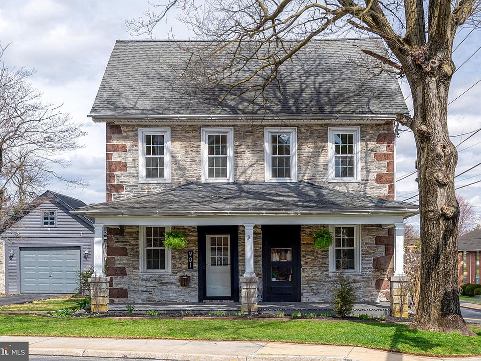 Admire the craftsmanship and character of this limestone built home from the early 1800s. This home was one of the original homes built on the west side of Ephrata. This charming 3-bedroom, 2.5 bathroom colonial home boasts almost 1900 square feet of living space. This home blends old charm with modern-rustic finishes. It features a master suite with a fully tiled bathroom complete with tiled walk in shower and sliding barn door. A 2nd shared full bathroom has a tiled tub/shower with a large vanity. The updated kitchen features granite countertops, large flush mount double wide sink, a custom bar perfect for casual dining and all new stainless appliances. Traditional wains coating adorns the living and dining rooms along with an exposed stone wall on the back of the home. Enjoy 1st floor laundry in the mudroom and a powder room for guests. Heading upstairs, you'll notice the original hardwood floors that have been beautifully restored, preserving it's classic charm. Other improvements include new LVP flooring on the 1st floor, new paint inside and out, new light fixtures throughout, and recessed lighting throughout. You'll love entertaining or just relaxing on the large two-tiered deck that overlooks the fenced backyard. An oversized 1-car garage with electric will take care of all your storage needs or provide a workshop. Updated mechanicals include new ductless mini-splits for A/C & heat, replacement windows throughout, newer architectural shingle roof, 200 amp electric service and more! You'll also love the large spacious attic for storage or ability to finish off for 4th bedroom or hobby room. The attic access has a new stairwell and is easily accessible. This historic landmark was built on Erb's corner across from the historic Smithton Inn and the former Miller's Tavern. It is conveniently located within a few hundred yards of the Ephrata Middle School and less than a mile from the High School. You are minutes from RT 222, PA Turnpike, and a host of restaurants and grocery stores. Don't miss out on the opportunity to own this piece of history, Schedule your private showing today, this home will not last long!