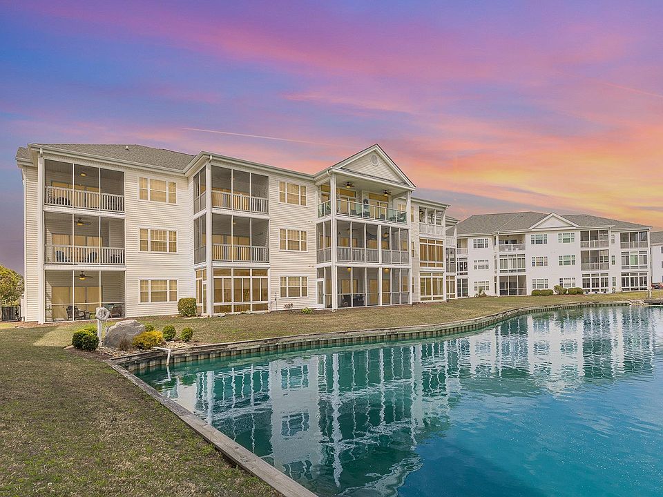 Come see this beautiful END UNIT Intracoastal Waterway community condo in the desirable Carolina Keyes. You will notice the upgrades immediately when entering and the condo sells partially furnished! The extra windows that the end unit offers showcase the soft, coastal colors and the kitchen's modern natural stone counters, white cabinets with subway tile backsplash and stainless steel appliances. There is even a washer and dryer! LVP flooring and crown moulding are present in the main living area. Another bonus is the split floorplan. Your guests have their own bedroom area and bath separate from the owner's suite. . The owner's bedroom has a large closet and ensuite bathroom. There is a great view of the pond from the owner's suite and the balcony which is screened for an undisturbed morning coffee or afternoon snooze. There are 2 storage closets to stow away all of your beach toys. Take a short walk to either of the 2 community pools or go fishing or park your boat at the Carolina Keyes boat docks on the Intracoastal Waterway. This community is quiet but close to all that North Myrtle Beach has to offer or hop on 31 to go anywhere on the Grand Strand. SHORT TERM RENTAL IS ALLOWED! Come make this place your own!