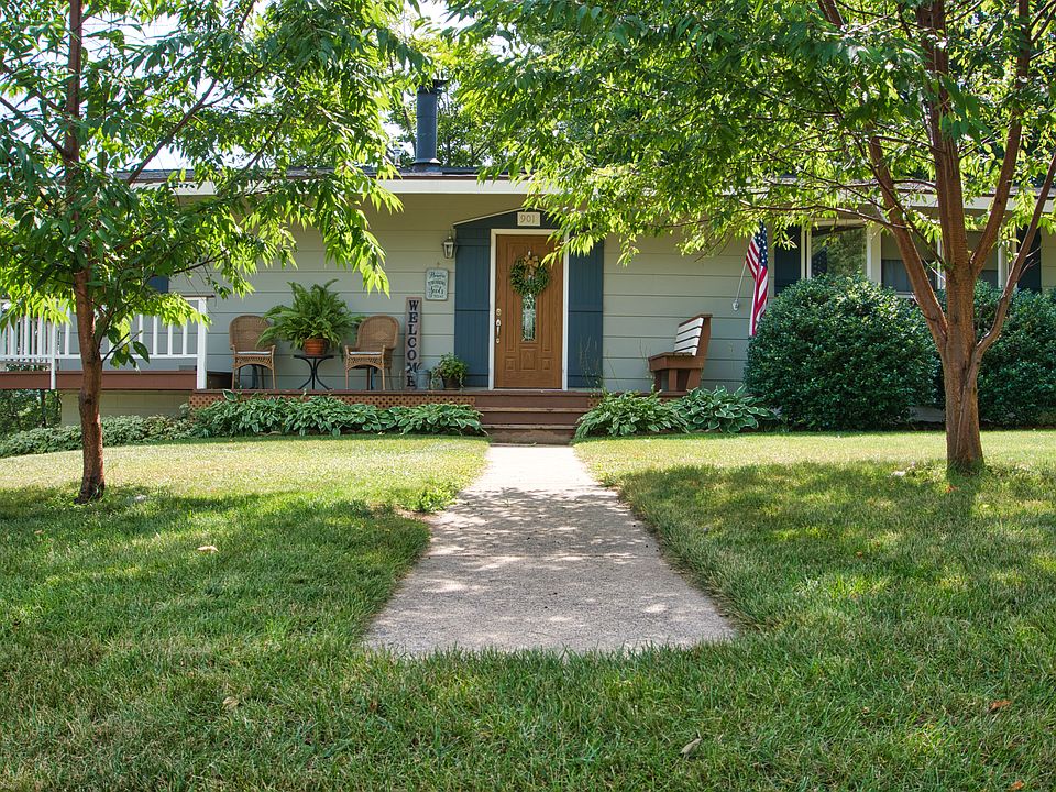 This 3 bedroom, 1-1/4 bath home with attached 2 car garage on large corner lot is conveniently located within walking distance from high school, downtown, food co-op, fit strip and bike path. Beautiful private side yard green space with brick patio and wrap around deck provides lovely hilltop view of the area. Open concept main living area features a cedar slat vaulted ceiling, updated kitchen including newer stainless steel appliances and charming coffee bar area. A must see! Fully remodeled main bath with ceramic tile flooring, porcelain vessel sink, waterfall faucet and large walk-in linen closet. 3 bedrooms and 1 bath on main floor. All main floor rooms freshly painted with newer carpeting. Quarter bath and 2 finished non-conforming rooms in basement currently used as an office and a library craft room. Laundry and workout area also located in basement.