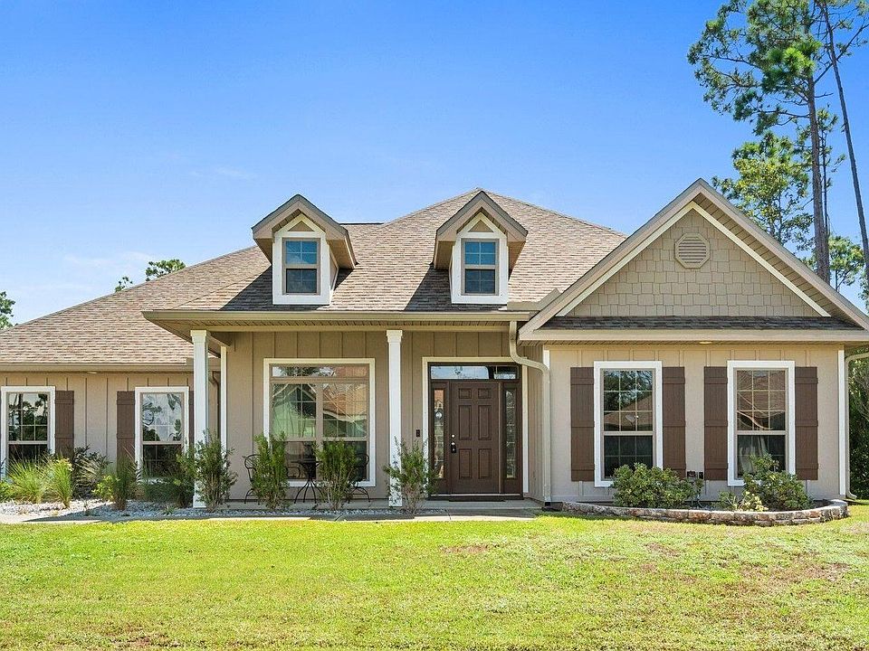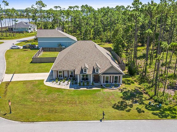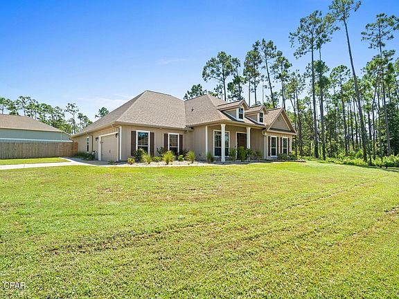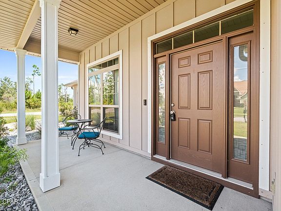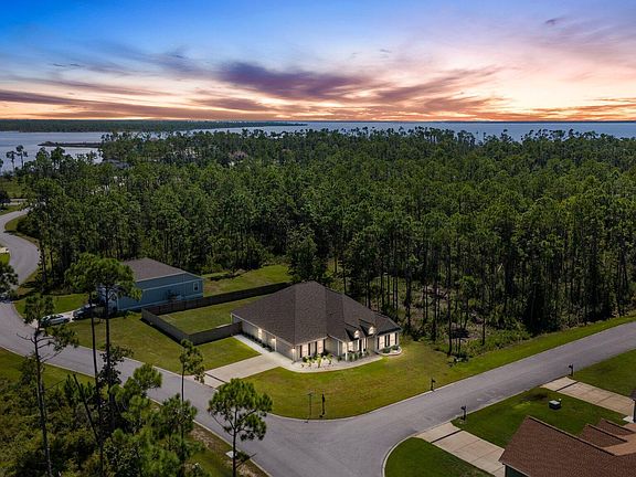 A beautiful home inside the gates of Laird Point! This well thought out floor plan is incredibly spacious. Enter into raised ceilings, recessed lighting, and amazing arched entries. Bright and airy with plenty of natural light. A large office on the right and a formal dining space on the left. The living space is open to the kitchen, featuring trayed ceilings and beautiful hardwood floors. The kitchen has plenty of cabinetry and granite countertops. It also has an island, stainless steel appliances and a walk-in pantry with custom shelving. This unique floorplan gives added privacy to the master suite. The master bedroom has plenty of room and a huge walk-in closet with built-ins. Master bath boasts double vanities, stand up shower, and a separate garden tub. All the guest rooms in this home are very nice sized with very large closets, some have walk-ins. The guest rooms are split up which is very convenient. You have two on one side of the home with a bathroom and two on the other side of the home with a bathroom. Perfect for children of different ages. There is brand new carpet in all bedrooms and the office. You will be very impressed with the number of closets and storage in this home. The laundry room features a full countertop for folding, a custom shelf and a closet. The living space leads out to the screened in porch, this is the perfect setup for entertaining family and friends. A large privacy fenced backyard. New pavers installed to give uncovered patio space for BBQ's. All new landscaping and a complete irrigation system was just installed. A side entrance 2 car garage with an upgraded side mount door opener with slide locks, it allows for extra storage on the ceiling. New roof in 2018. The Hardi-board exterior was newly painted this year. Home is pre-plumbed for a water filtration system. Entire home has been fitted for a Kevlar material covering that you can put on for protection during a hurricane, it is for all windows/doors and conveniently stored. Pride of ownership shows throughout. Laird Point is a gated, waterfront community featuring beautiful homes and water views at every turn. Ribbon curbed streets and underground utilities. A nice and private community perfect for walks in the mornings and evenings. Amenities include Rv/Boat storage and Tennis court, a new Pickleball court, and Half-court basketball. Excellent proximity to TAFB and restaurants and shopping. Just a short drive to Mexico Beach and 40 minutes to Panama City Beach. Schedule your visit today!
