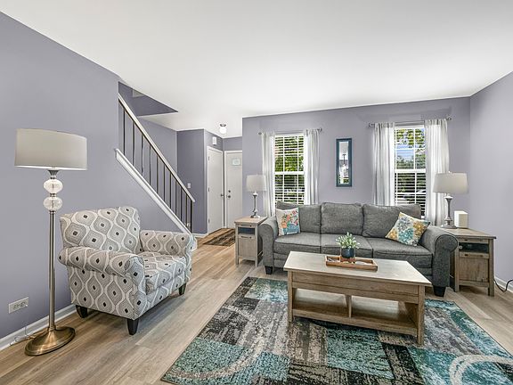 Event for Saturday 9/13 is cancelled. Fully renovated end-unit beauty east of the Fox River in Algonquin-where curb appeal meets modern flair. Picture this: a partial brick facade framed by mature landscaping, sleek wood-laminate floors beneath updated lighting, crisp white trim, and living room vibes centered around a cozy gas-log fireplace. The formal dining room pops with picture molding, chair rail, and brand-new windows that flood the space with light. The kitchen sports bright white cabinets, stainless steel appliances, and connects to a handy laundry room and breakfast nook with brand new inset-blind sliding door (no dusty blinds here!). These doors open to a massive deck with privacy partition, ideal for entertaining or sipping wine in peace. Upstairs, two generously sized bedrooms await, complete with new carpeting (stairs, hall, and primary). The vaulted primary suite wows with dual closets and direct access to a fully renovated bathroom featuring a walk-in shower with built-in seat, fresh vanity, and new fixtures. Plus multiple linen closets for all your storage needs. Don't miss your chance to snag this move-in-ready gem in one of Algonquin's most charming, trail-filled, and commuter-friendly locations-schedule your showing today before someone else beats you to it!