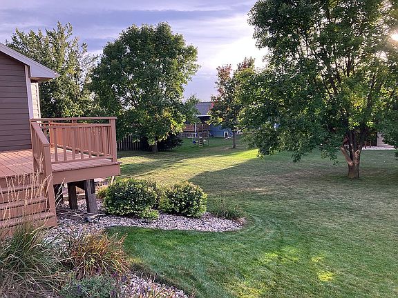 Ranch walk-out in Pony Hills Addition for sale by original owner. Wonderful neighborhood close to the Rocky Run Golf Course in beautiful Dell Rapids, SD. Four bedroom, 3 bath house with 1,420 sq. ft. on main, and 980 sq. ft. finished in lower level. Vaulted ceilings in living, dining, kitchen and master bedroom. Hardwood floors throughout main level. Tile floors in all bathrooms and in the laundry room located on the main level. Granite kitchen countertop and tile backsplash. Stainless steel kitchen appliances including a new refrigerator. Tile shower in master bathroom. Walk-in closets in master bedroom and 3rd bedroom. Family room with gas fireplace. Walk-out lower level with paver patio. Deck leading from dining room. Paver front walk/patio. All appliances including washer/dryer stay with house. Oversized 2 car garage with shelves and cabinets. New furnace and AC in fall 2020. Large yard with underground sprinkler system and beautiful landscaping. Owner is a licensed SD RE Broker Associate. Buyers & Agents call/text 605-838-8446, or email bbbmogen@gmail.com for more information or to schedule a showing. Seller will pay commission to Buyer Agency.