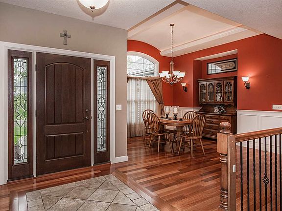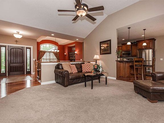 RANCH WALK-OUT with many fantastic features! From the moment you step inside, you're greeted with tile inlay, beautiful hardwood flooring & vaulted ceilings! The Dining Room has a custom Barrel Ceiling w/ lighting and bump out for China Cabinet. The Great Room, w/ custom fireplace hearth, is a fantastic place to entertain! Flowing into the kitchen, you have dining space as well as breakfast bar and beautiful VIEWS! Private Spacious Master Bedroom has vaulted tray ceiling, 5 pc Master Bath & walk-in closet. Two guest rooms & full bath round out the main floor, so head downstairs to the HUGE Finished Basement that boasts 9' ceilings, 4th Bedroom, Family Room, full wet bar including Dishwasher, full refrigerator, a 3/4 bath AND a second Laundry Room! This is great 2nd living quarters! Partially finished rec space and large storage room complete the bsmt. Patio under the deck strolls out to the open yard! Big home with a warm, cozy feel and comfortable layout. This home is Perfect!