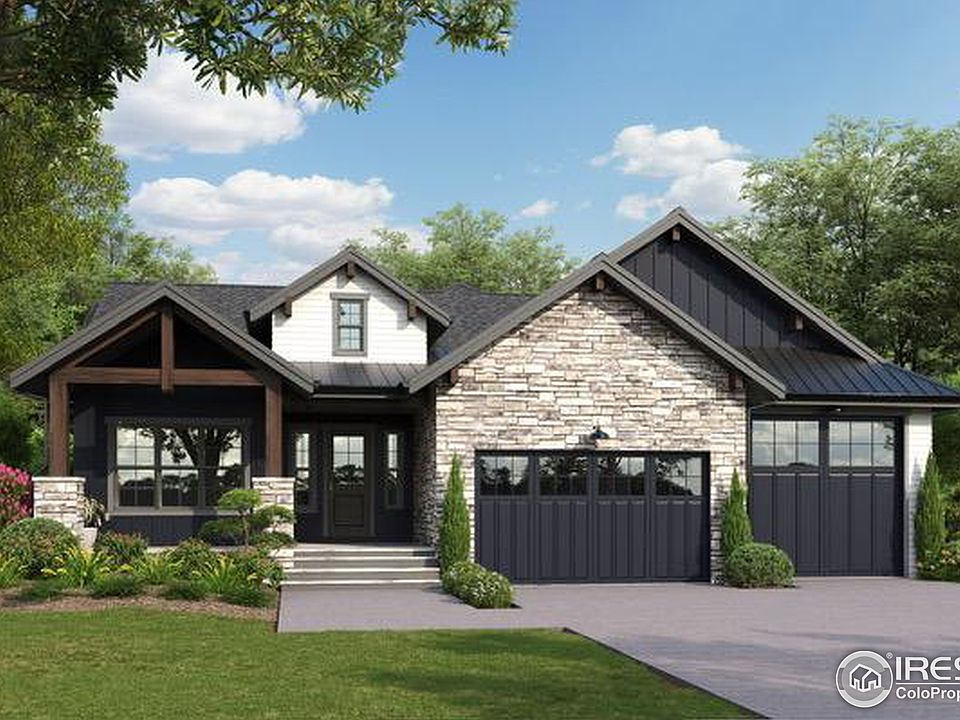 Presenting another exquisite creation by CalBuilt in the Harvest Ridge subdivision. This modern farmhouse is waiting for the new owner to select Finishes, charming exterior adorned with a blend of stone and natural wood. Step inside to discover an open floor plan that seamlessly unites the living, dining, and kitchen areas, perfect for entertaining. The kitchen, featuring quartz countertops, is equipped with a double oven and a gas range. The main level offers three bedrooms, including a spacious primary suite with an oversized closet. Enjoy vaulted ceilings, a generous living room, and an abundance of natural light. Additionally, this home includes a 4-car/RV garage with 14 ft RV Door, providing ample space for all your vehicles and toys. Nestled in Berthoud, this home masterfully combines modern amenities with classic farmhouse charm, and best of all, there is NO METRO TAX! Optional basement finish shown in floor plans on MLS.