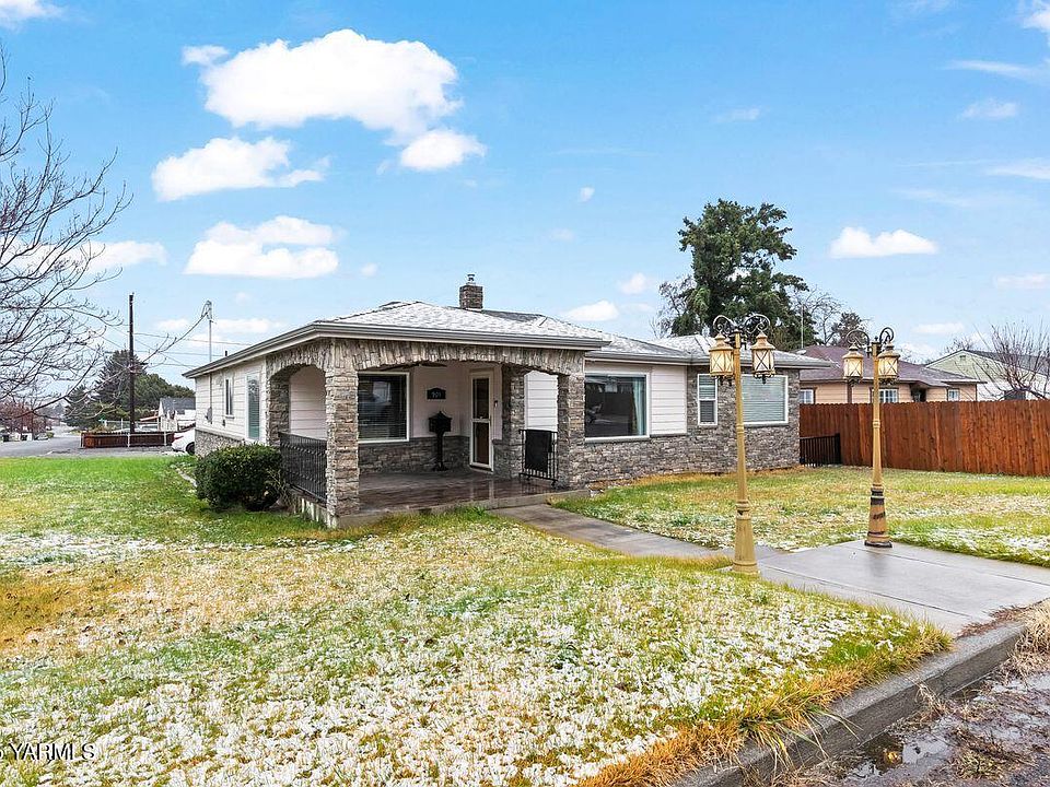 Grandview Rambler home offers curb appeal with a stacked stone exterior and an inviting covered front porch with fan and tiled floor. Welcoming living area with tile floors and an arched door that leads to the formal dining area with plenty of natural light. Functional kitchen, featuring wood cabinetry, stainless steel appliances, gas range with hood, granite counter-tops, stainless apron sink. Bedrooms are a great size. Primary bedroom has a walk in closet and spacious bathroom with custom tile shower. Home comes complete with a detatched two car garage and outbuilding. Minutes away from resturaunts and shopping. Close to the highway for an easy commute! Call your agent to view today.