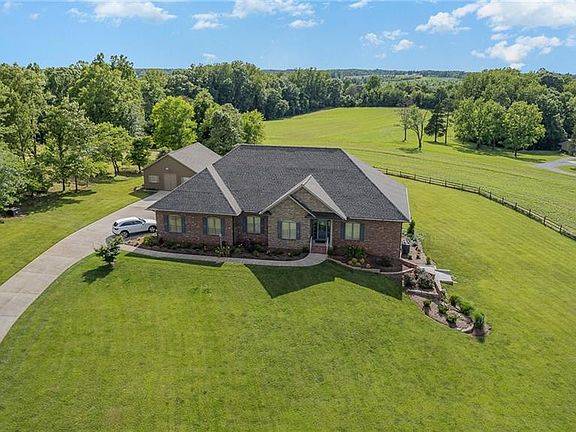 PLEASE SUBMIT ALL OFFERS BY 8pm, June 18th. Hard to find brick ranch with a basement on 1.86 acres! There is also a detached workshop/garage. This inviting home offers 3 bedrooms on the main level and a 4th one in the basement. There are lots of nice features thru out such as some wood flooring plus a kitchen with solid surface countertops, walk in pantry, and a large island! There is a sunroom off the kitchen. The generous sized living room has a fireplace. The basement offers alot of room and versatile space that can be used as an office/exercise room/playroom, and more! MUST SEE!