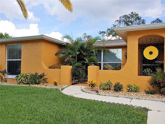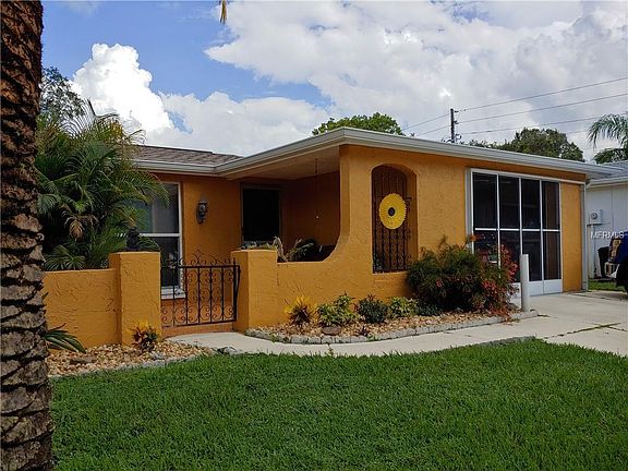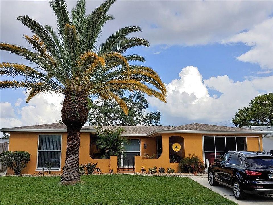 PRICE REDUCTION!! Charming Move-In Ready 2 bedrooms, 2 bathrooms, POOL home, located in Regency Park. This wonderfully maintained home boasts a 2-year old roof, 2-year old 6" seam gutters, 2-year old 38 gal water tank, 3-year old exterior paint, 8-year old AC and Heat, and over 1400 sq. ft of living space. The eat-in kitchen has solid wood oak cabinets and a huge countertop which opens up to the family room and dinette which all have new laminate wood floors throughout. The large Master Bedroom overlooks the screened-in lanai/in-ground pool and features a large walk-in closet, access to the master bathroom with dual sinks, and is large enough to fit a king-size bed. Enjoy your days and evenings by relaxing or entertaining in your spacious screened-in lanai and marcite in-ground pool or enjoy the outdoors in your fenced back yard with mature landscaping and requires minimal yard work. There is a spacious 1 car garage, widened driveway that easily fits 2 cars, lots of closets and storage, thermopane windows with 200 mph wind film and, 12" blown-in insulation in attic. There are No HOA, No Flood Zone and No deed restrictions so bring your boat, motorcycle or RV and all this is conveniently located near shopping, grocery stores and restaurants. This is a definite MUST SEE!