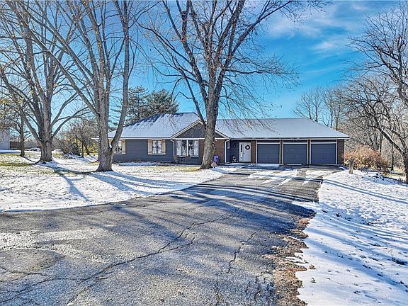 5 Bedroom Ranch with Finished Basement Nearly 3400 Sq. Ft in Desirable DeSoto School District. Gorgeous & Private 2.41 Magical Acres w Outbuilding and Sides To Another Heavily Wooded 8 Community Acres Next Door ( Lots of room to roam or ride horses ) Bonus 3 Car Garage. Newer Roof GAF Timberline Roof ( w transferable warranty ) and Some Newer Carpet Throughout, Newer Cheerful White Kitchen w/ SS Appliances & Newer Exterior Siding and Wood Shutters. Huge Greatroom w Custom Built Ins & Cozy Fireplace. Adorable Mud Room w Built Ins Connects Garage to Home. Bonus Lower Offers a Extra Large Rec Room, Game Area , 2 Additional Bedrooms & Jack N Jill Bath. Ample Storage. If You Desire Quiet Peaceful Living This Home Is It! Out Building Could Be Converted Back For Horses. Large Deck Out Back To Relax & Unwind