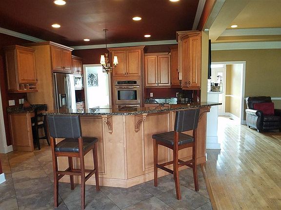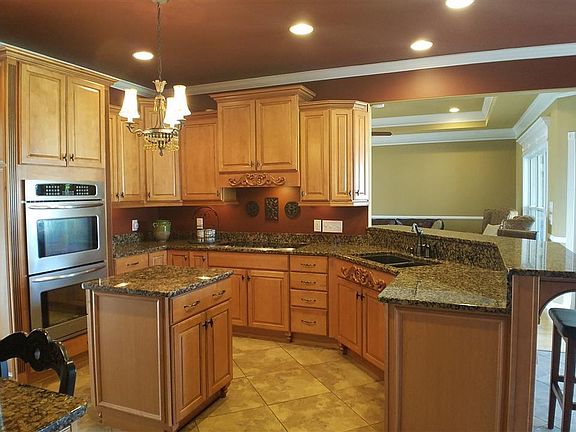 - RoomKitchenFeatures: Granite Counters, Kitchen Island, Pantry, Tile, Eat-in Kitchen, Smooth Ceiling, Crown Molding