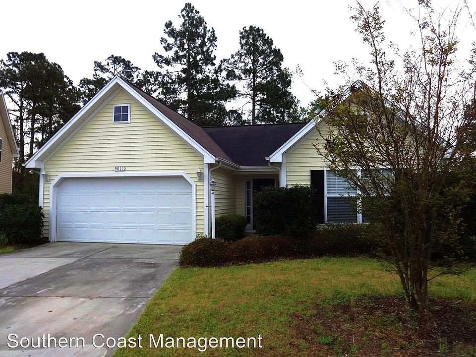 Available now! Spacious, Pet Friendly, 3 Bedroom, 2 Bath Home with Garage in Southgate! - Spacious unfurnished, pet friendly, single family home on a cul-de-sac in a fabulous community! This roomy three bedroom, two bathroom home provides approximately 1,600 sq feet and is located in Carolina Forest's premier community of Southgate. Home features vaulted ceilings and hard surfaced flooring throughout the common areas. The kitchen is equipped with white cabinets, food pantry, smooth top stove, over the range microwave, dishwasher, and refrigerator. Laundry room with washer and dryer included as is. Dining area with bay windows looks out to the backyard that runs along a woods preservation. Concrete patio offers space to relax and entertain. The attached two car garage adds additional storage space for gear and vehicles. The master bedroom has a walk in closet and private bathroom with walk in shower and separate garden tub. Home is pet friendly for a maximum of two pets, cats or dogs. Breed restrictions do apply. Non-refundable pet fee of $200.00 per pet is required. Rent is $1,385.00 per month. Tenant pays all utilities. Security deposit of $1,385.00 and renters insurance are required. All Southern Coast Management properties are non-smoking. (RLNE2076729)