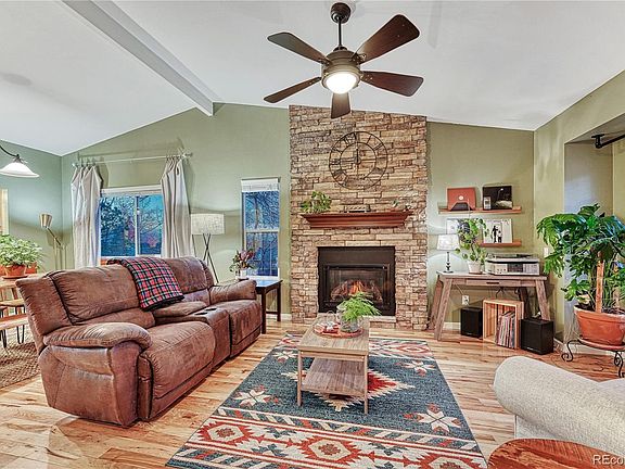 Welcome to your move-in ready oasis with mountain views! This well-maintained three bedroom, three bath home sits on a quiet street and features a fenced back yard, invisible electric pet fence, lawn irrigation and mature trees. Enjoy your morning coffee, read a book, or practice your yoga routine from your huge, shaded Trex deck. Step outside the walkout basement onto the covered patio below to care for your raised garden. The main floor living has an open floorplan with vaulted ceilings in the living room/dining room, stone surround gas fireplace and hickory hardwood floors. The well appointed kitchen offers plenty of storage, stainless steel appliances, custom hardwood cabinets, granite countertops, and hickory floors. The primary suite accommodates a king-size bed and offers a private sitting area, walk-in closet and hard-to-find dual vanities. A second bedroom and bath finish out the main floor. The downstairs features two more living areas, including a wet bar, and extra built-ins, suitable for entertaining or extra office space, and an additional bedroom and bath for guests. The home finishes out with a storage room and a workbench downstairs, along with a separate utility room, including a washer and dryer. The two-car attached garage offers an additional workbench. The Tuff shed in the backyard stays with the property.